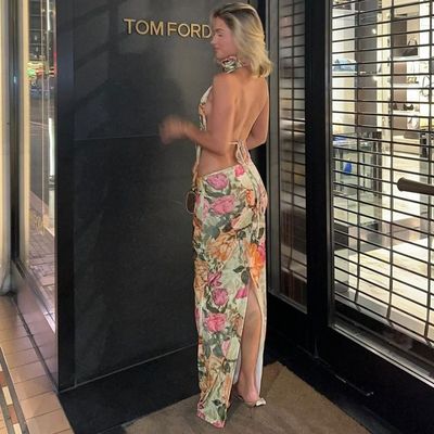 Sexy sin espalda sin correa Top delgado Falda V Cuello Larga longitud